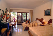 33 zweckmäßig eingerichtete Zimmer im Bali-Stil, alle mit Dusche/WC,