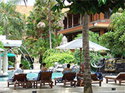 Sehr gepflegtes Gartenhotel im Zentrum Sanurs.
