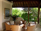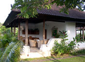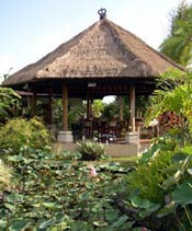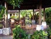 Im balinesischen Stil erbaute Anlage inmitten eines schönen Gartens.