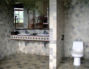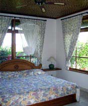 und Moskitonetz. Das Badezimmer ist von identischer Größe und